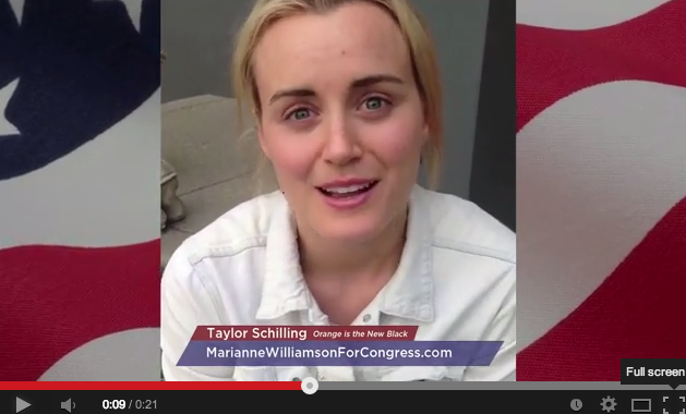 Taylor Schilling, of Orange Is the New Black Endorses Marianne Williamson for Congress